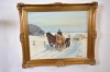 Viktor Rasmussen olja på duk, hästar i vinterlandskap, yttermått 75x64 cm