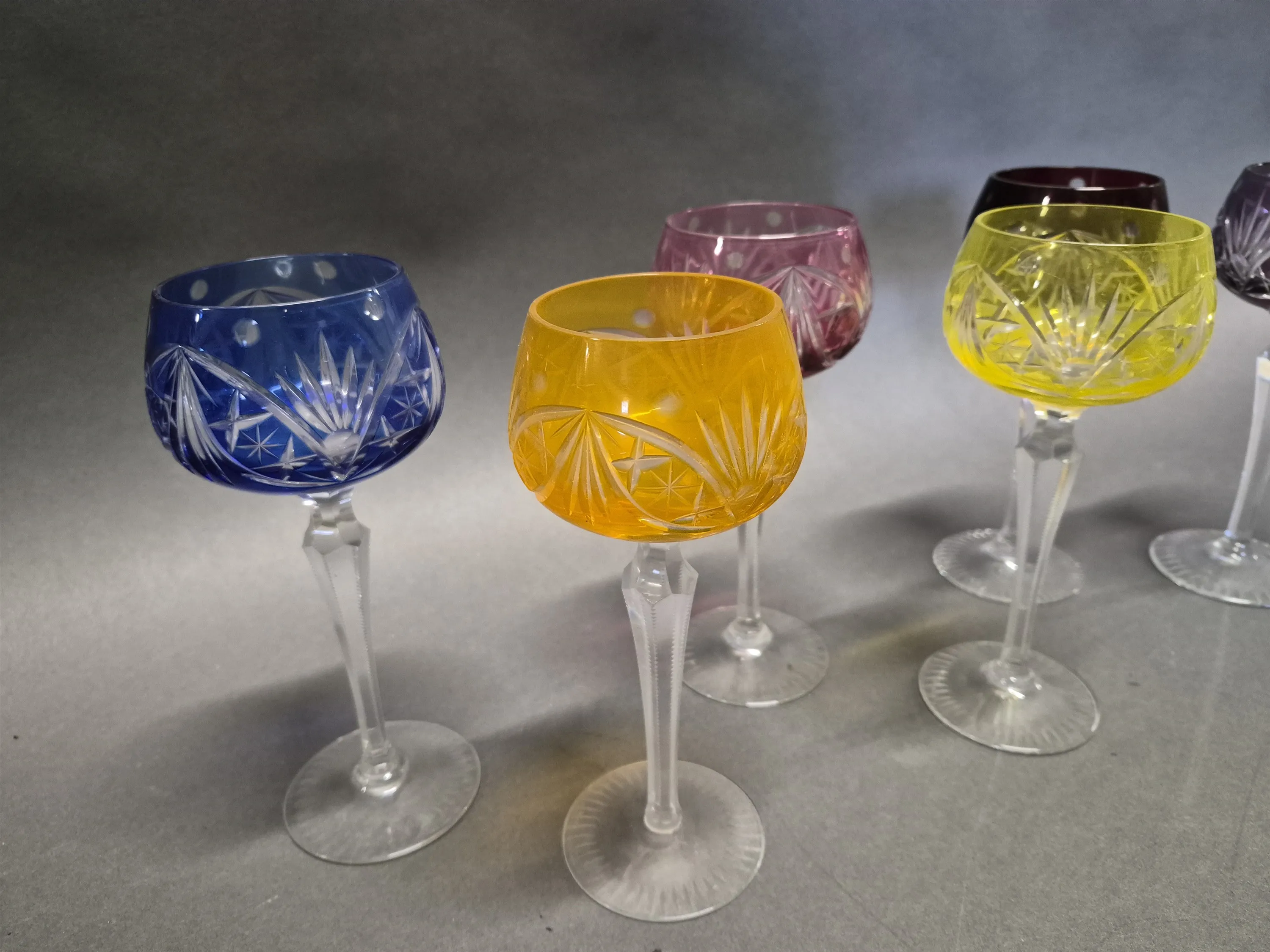18744. Vinglas med färgad kupa 6 st, höjd 20 cm