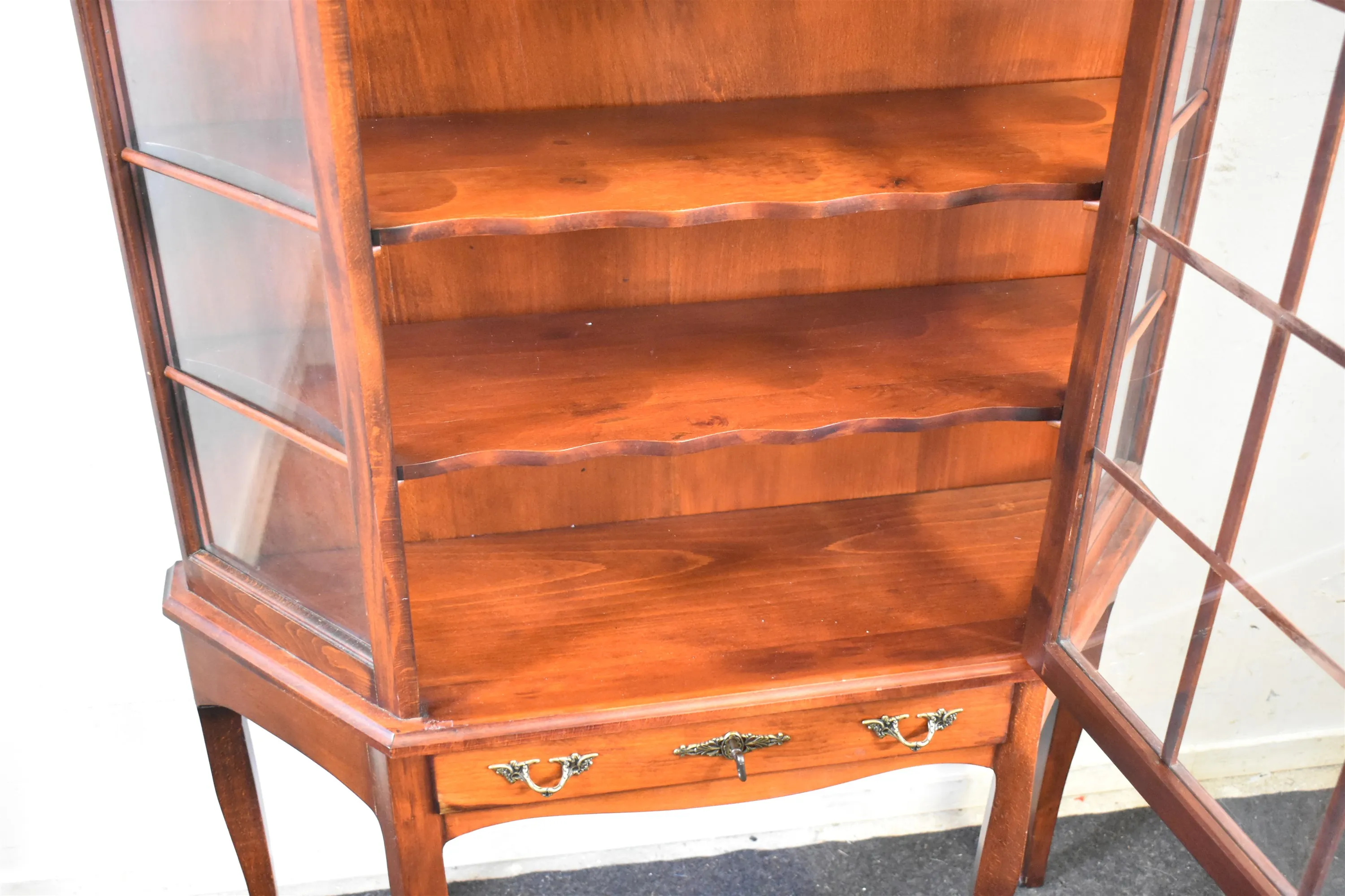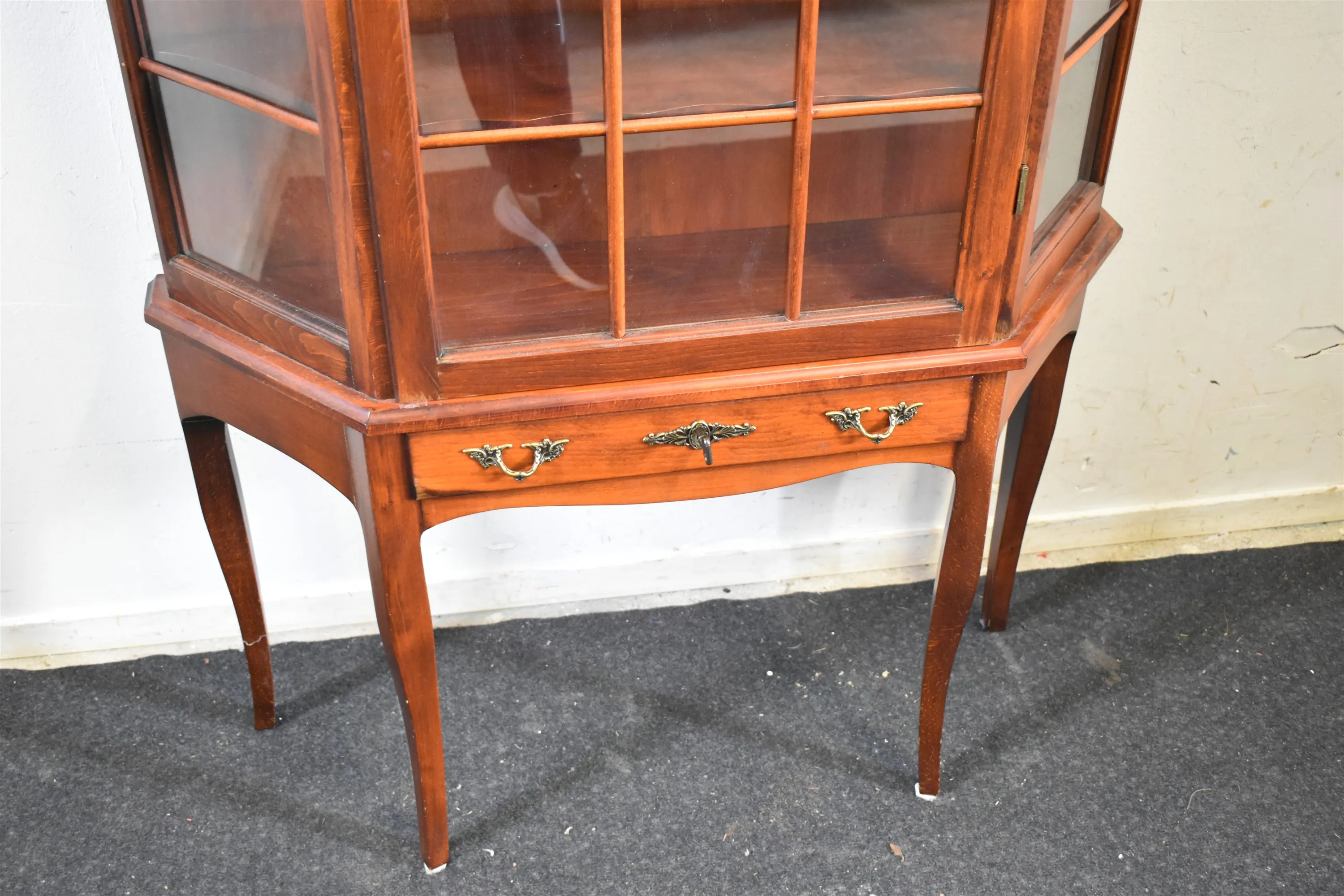 4522. Vitrinskåp med låda, engelsk stil, höjd 168 cm, längd 83 cm, djup 26 cm