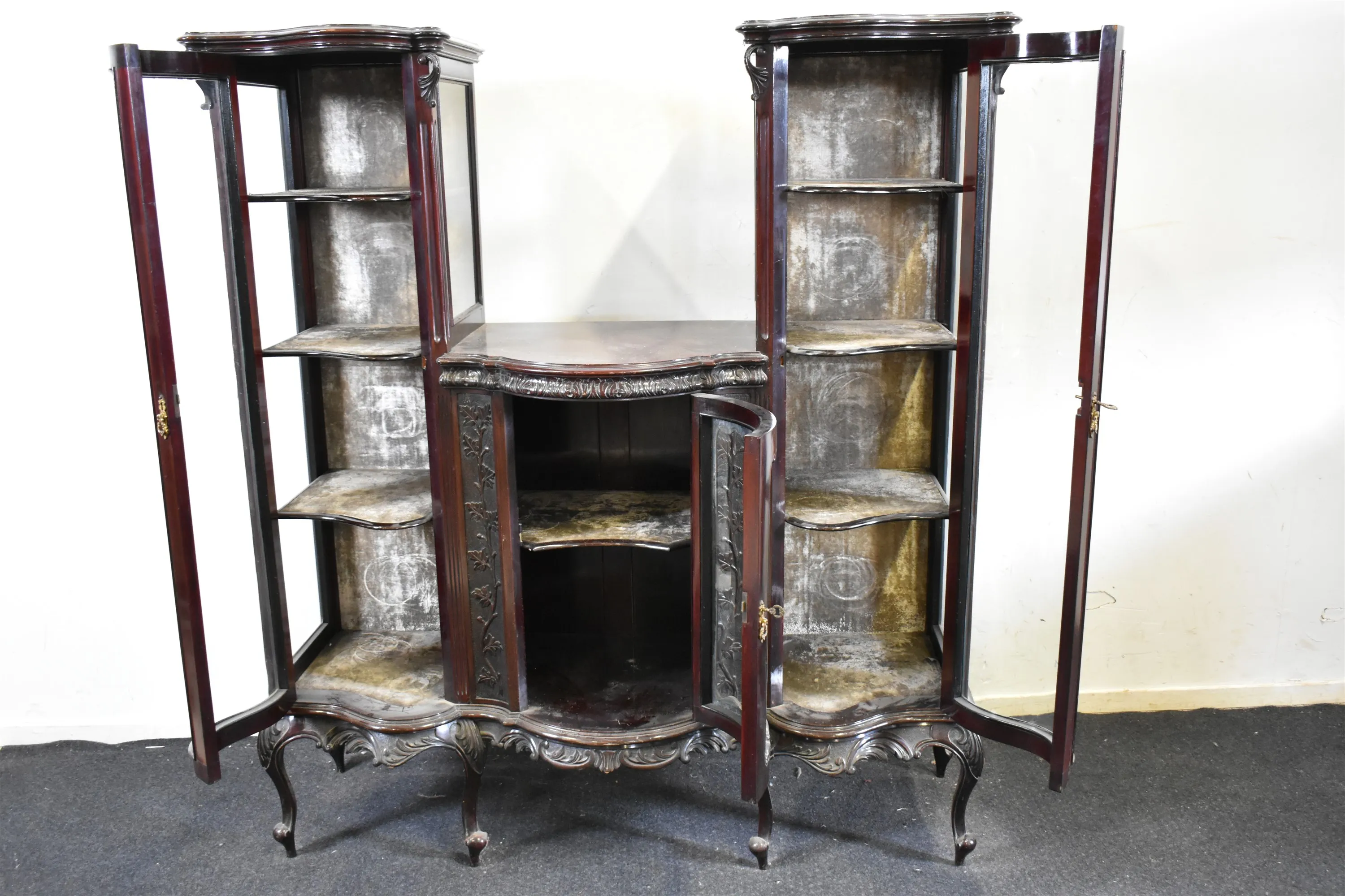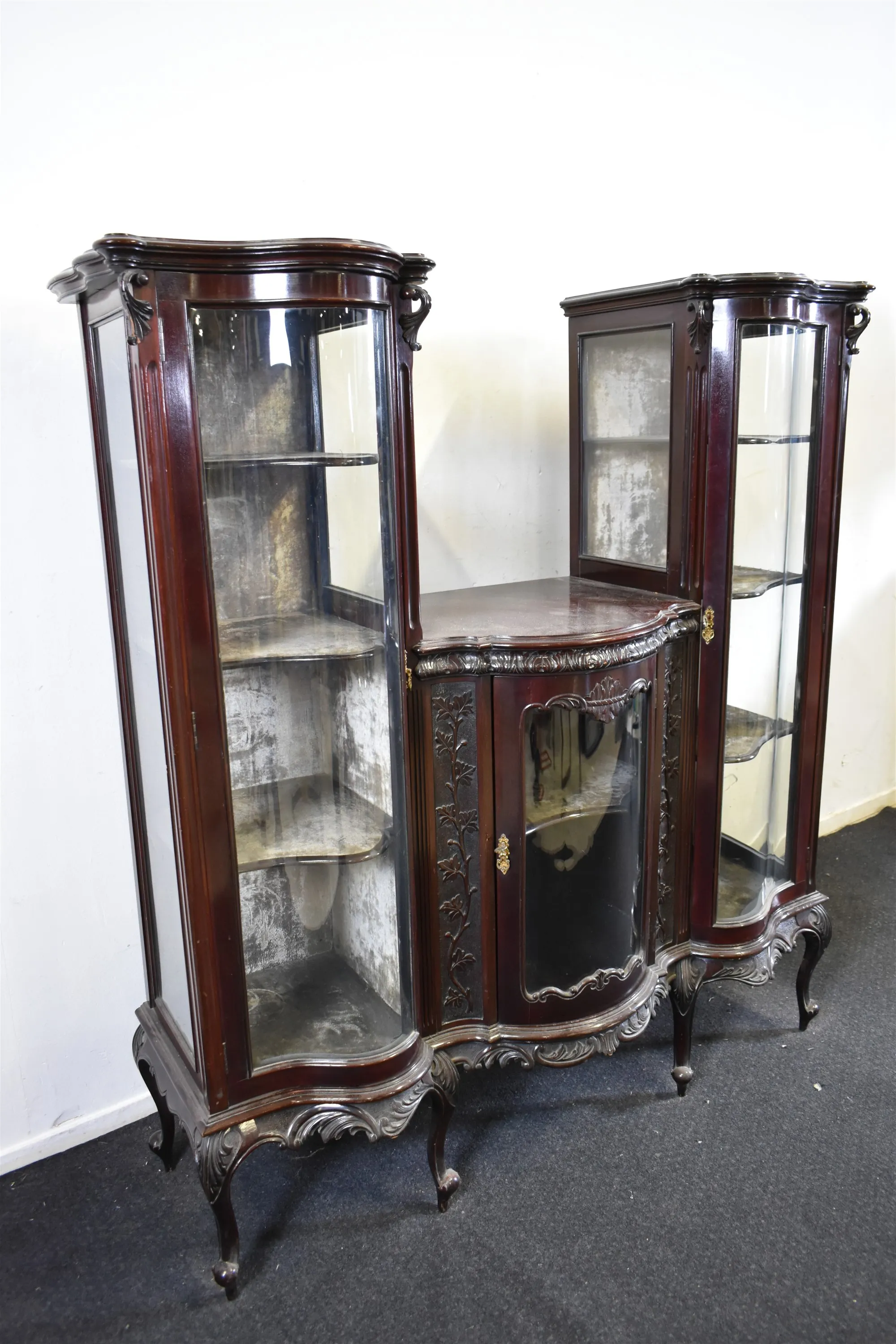 5973. Vitrinskåp, rokokostil, höjd 156 cm, bredd 145 cm, djup 50 cm