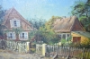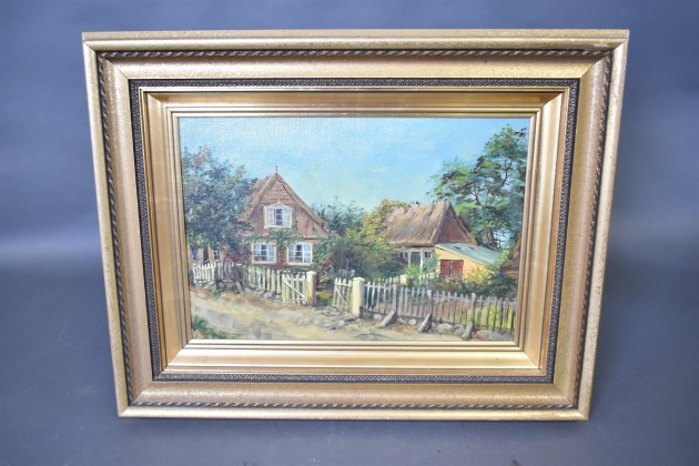15401. W.Grange olja på duk, "Hus med trädgård", mått 57 x 73 cm