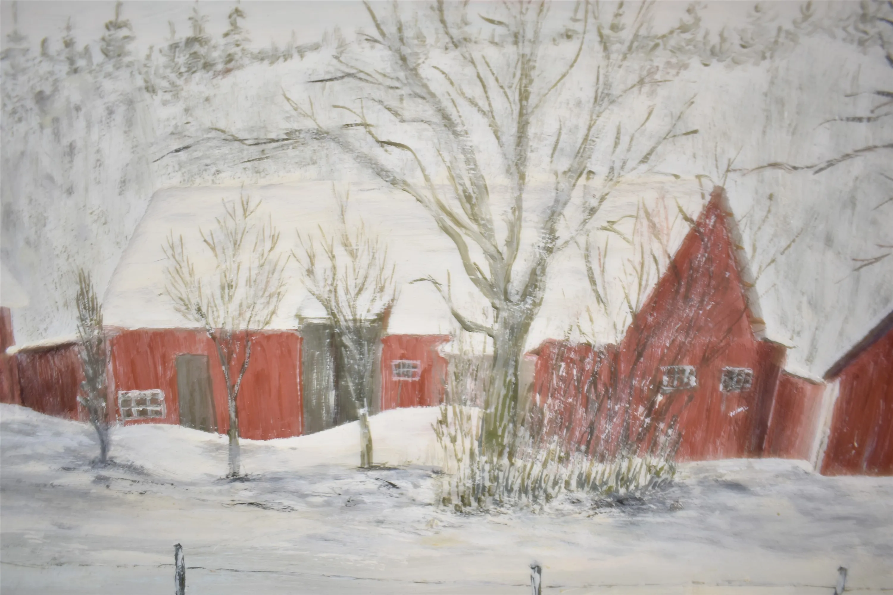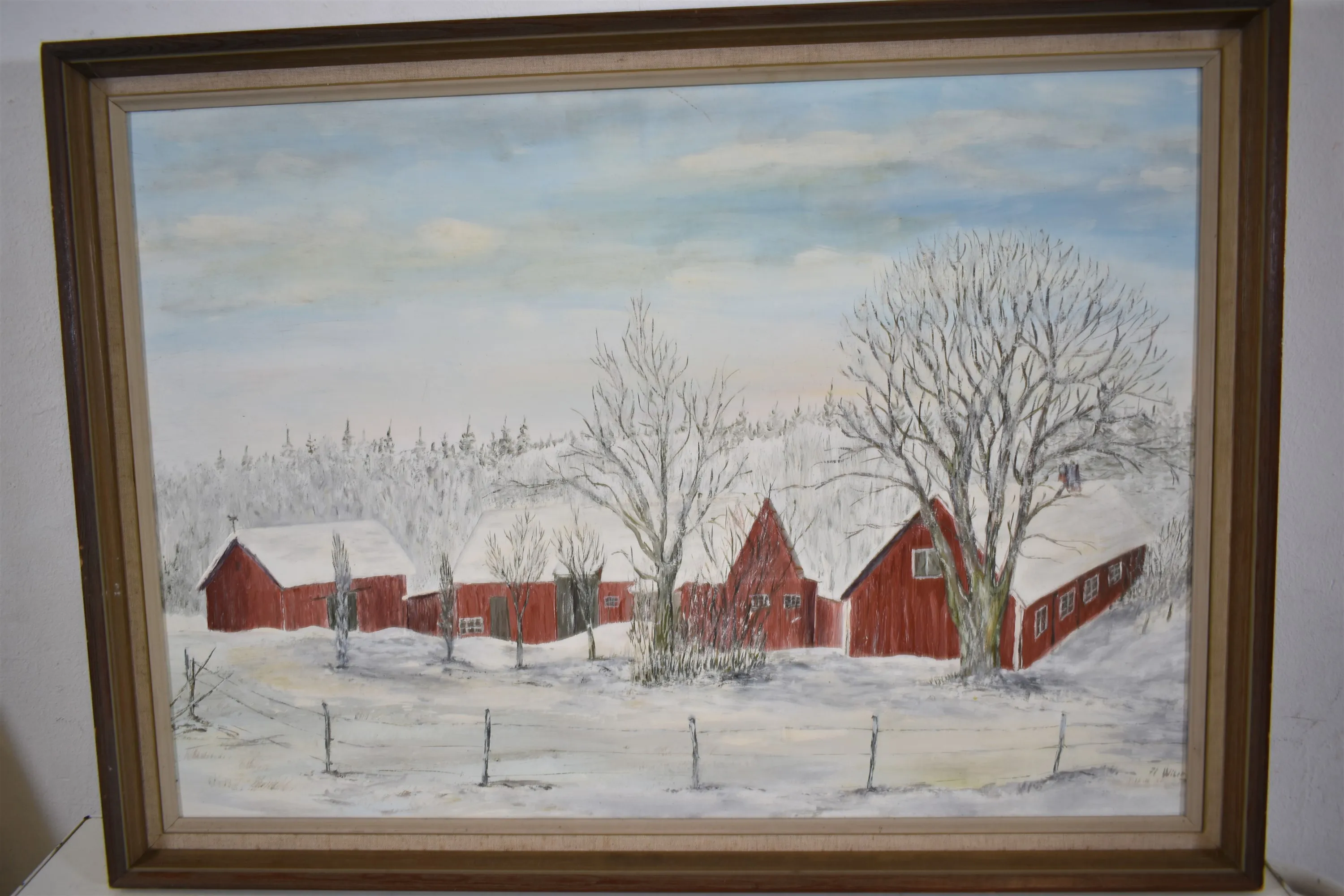 15094. Wiberg olja på pannå, "Vinterhus", mått 66 x 91 cm
