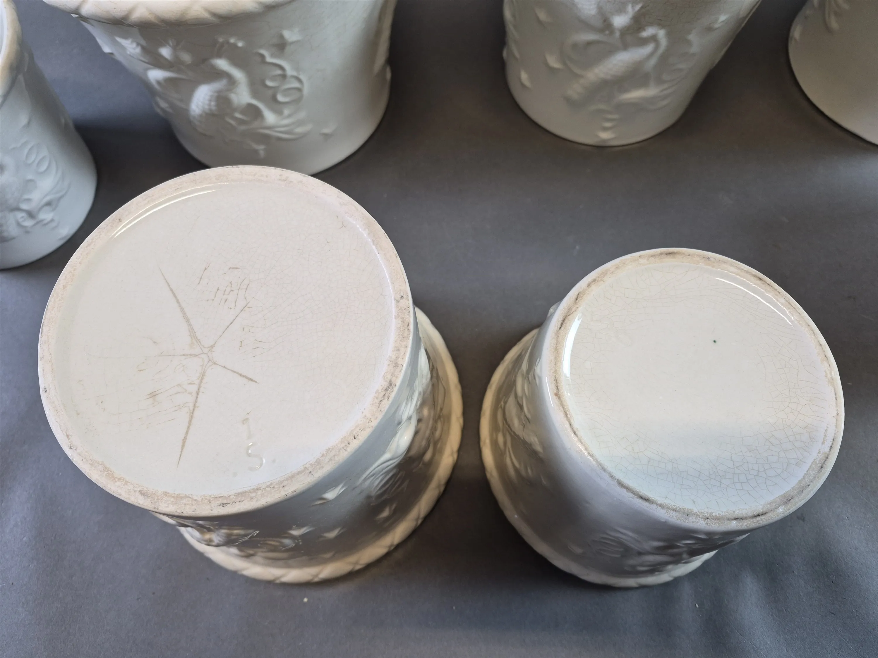 20564. Ytterfoder 7 st Påfågeldekor, Arthur Percy högsta 19 cm
