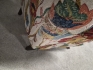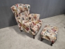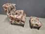 18916. Öronlappsfåtölj & pall, kretongklädd höjd 96 cm